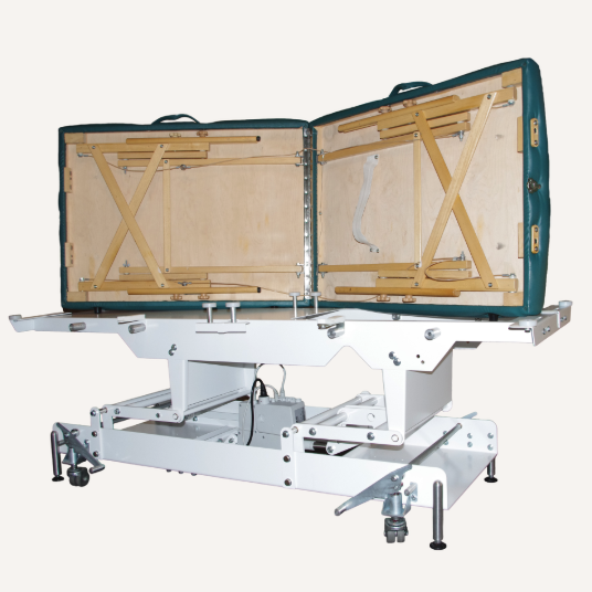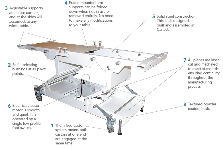 Simply release the cable system and place your table onto the base unit